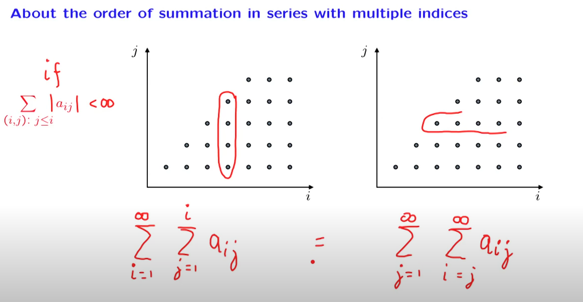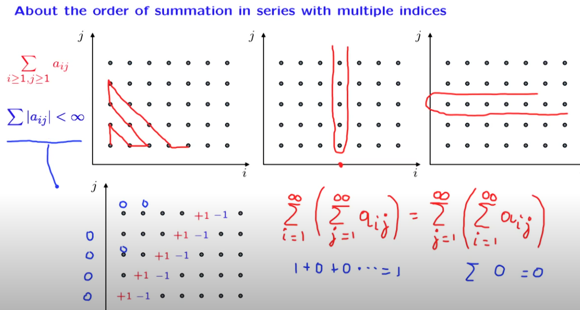 다만, summation(l aij l) < infinity가 아닌경우에는, 다른 인덱스를 먼저 계산하면, 값은 다르다.